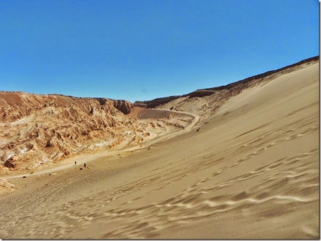 Suurem tee Calama ja San Pedro de Atacama vahel. Vasakule jääb Cordillera de Sal, ja kaugemal on liivaluited.